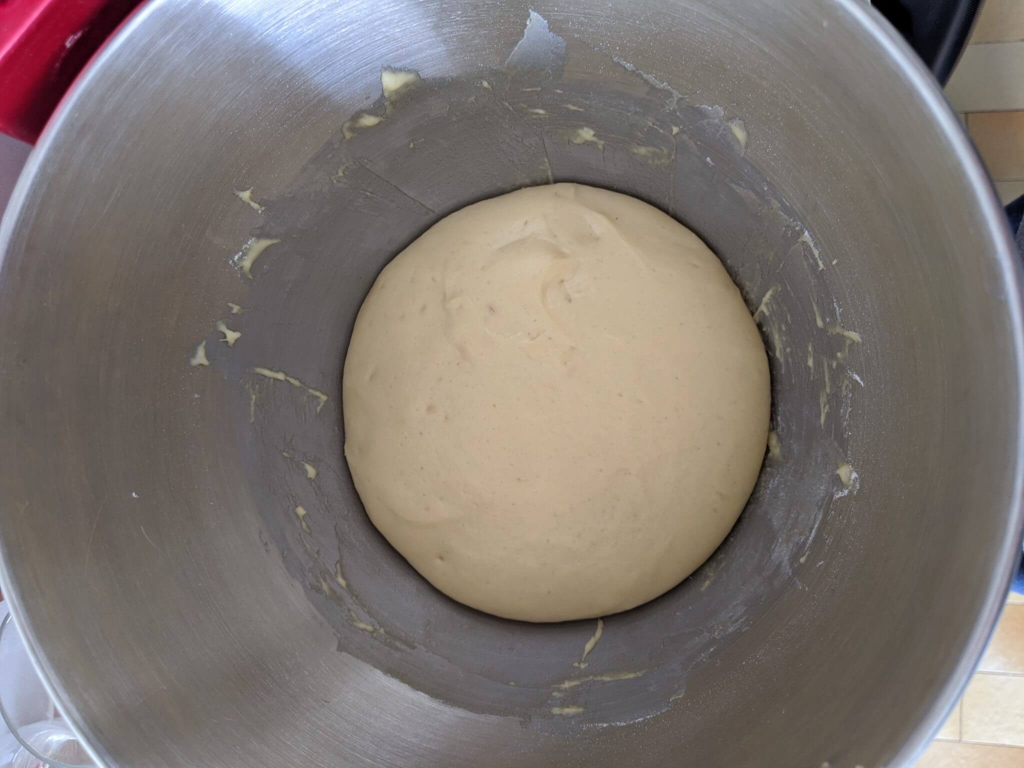 - Pétrissez la pâte plusieurs minutes jusqu’à obtenir une pâte lisse, bien élastique mais pas trop collante.