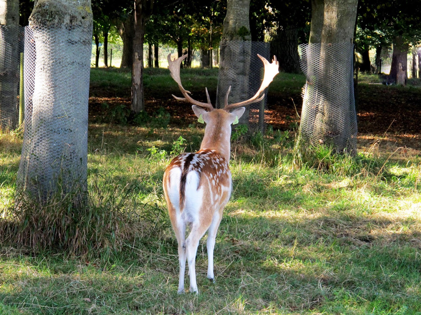 Une fois que vous avez vos vélos et bien il ne vous reste plus qu’à chercher les daims ! Quand on y a été, le matin, ils étaient sous des arbres, comme vous pouvez le voir sur les photos et aussi tout près d’une route (alors qu’on pourrait penser qu’ils resteraient plutôt dans le cœur du parc et bien pas du tout, ils vont vraiment partout!), mon chéri les a déjà vu en plein milieu des pelouses, il faut donc vous armer de patience et les chercher partout !