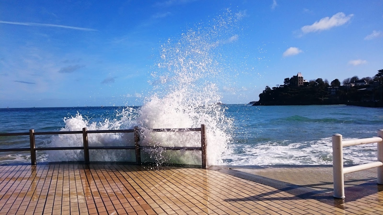 Pour celles et ceux qui ne connaissent pas du tout, Saint Malo est une ville bretonne, en partie fortifiée et entourée par la mer. Lors des grandes marées (comme quand j’y étais), les vagues montent tellement haut qu’elles dépassent les remparts.